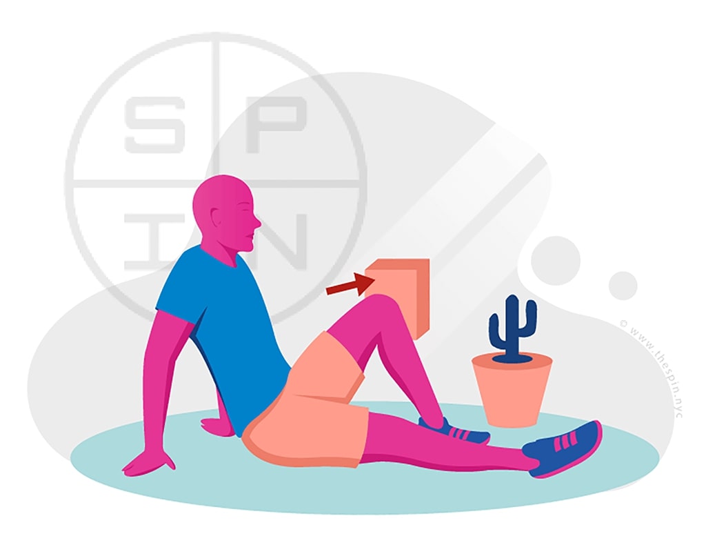 Sit on the floor with your involved knee against a wall.